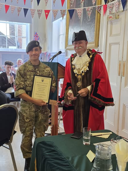 Congratulations to retiring Mayor’s Cadet Cpl George Batten and new Mayors Cadet LCpl Imogen Pascoe.