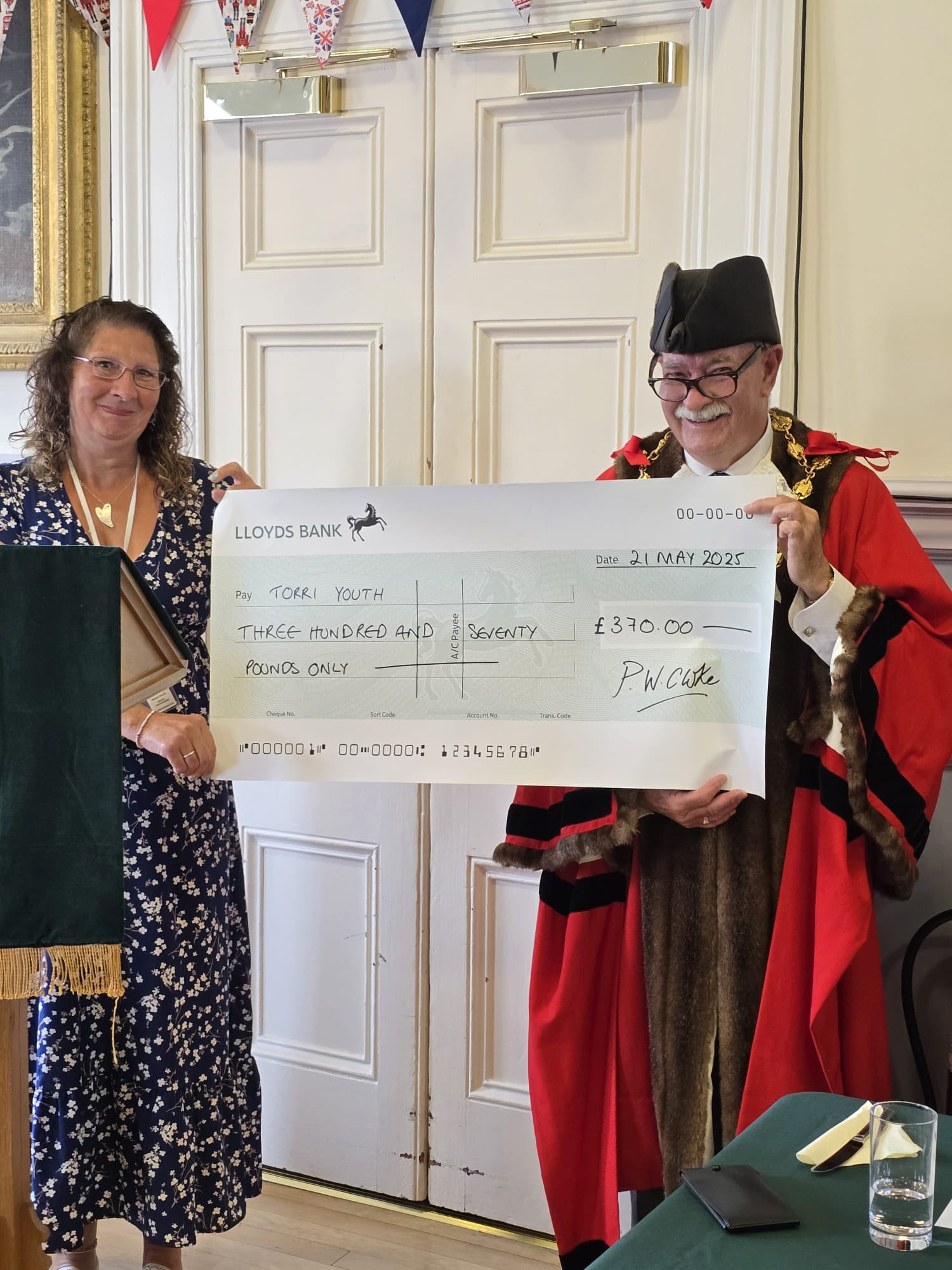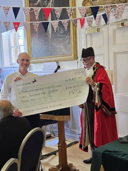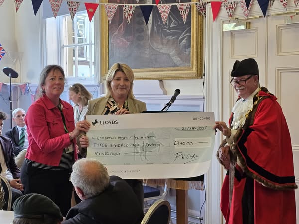 At the Mayoral Introduction Ceremony, Mayor Phil Cloke was delighted to present cheques from his Mayor’s Appeal to representatives of his three chosen charities for 24/25 – Children’s Hospice South West, Torrington Amateur Athletic Club & Torri Youth.