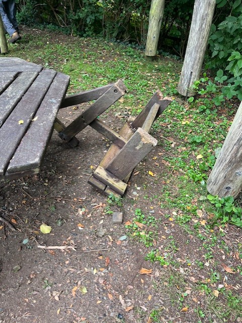 We have had yet another incident of vandalism in Trafalgar Drive play park this weekend, the benches were targeted once again.